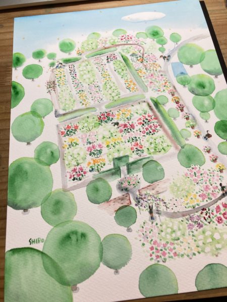 先日の花遊庭さんの絵に引き続いて、今回は練馬区の四季の香ローズガーデンさんの絵を描きました。