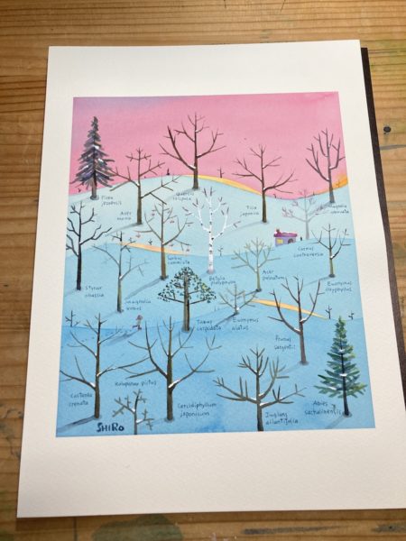 しかも描いている途中でべつのバージョンも思いつきました。それも描きたい。でも冬の絵ばかりでは展示がさみしいので、その前に春の絵を描こうと思います。